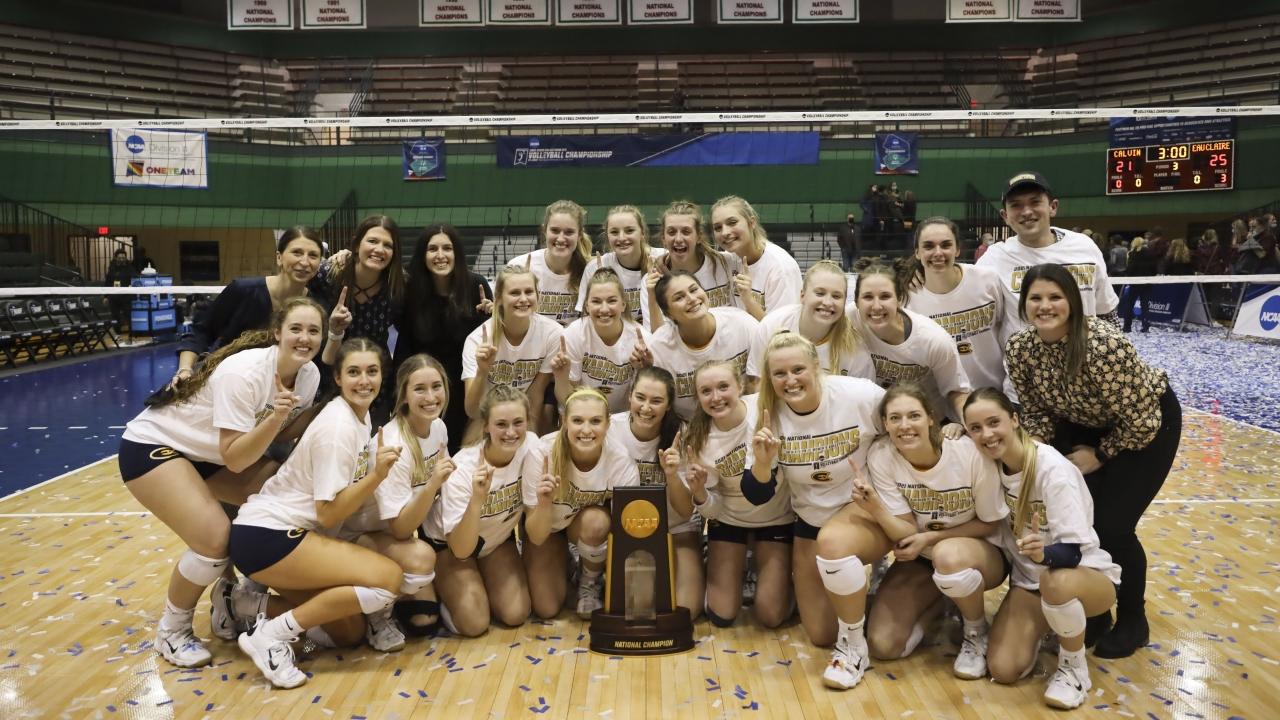 Wisconsin-Eau Claire has its first national championship in school history. The Blugolds won the third set 25-21 to defeat Calvin and win the title.