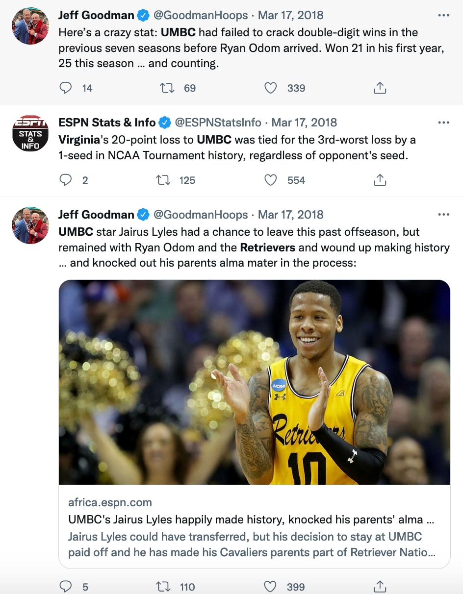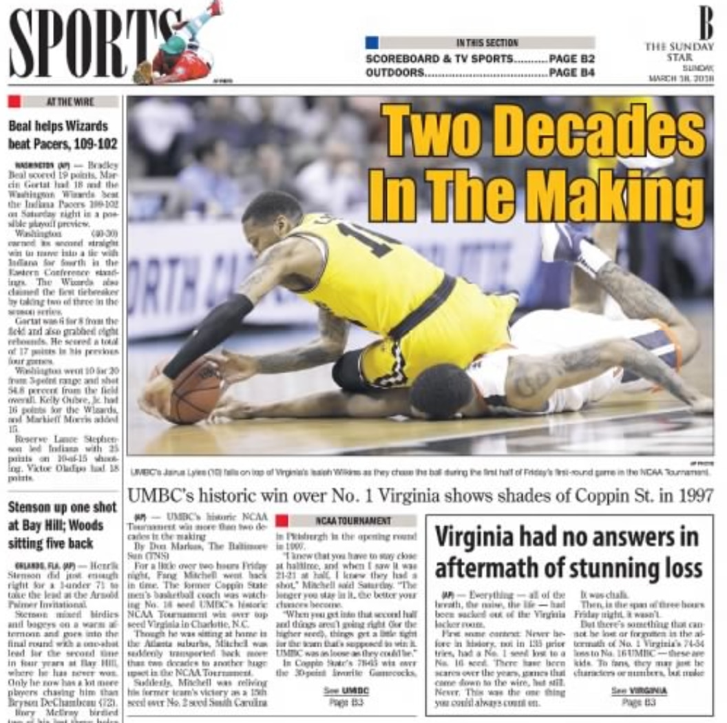When Virginia and UMBC tipped off around 9:20 p.m. ET that night, No. 1 seeds in the NCAA men's basketball tournament were 134-0 against No. 16 seeds since the field expanded to 64 teams in 1985. Fellow No. 1 seed Xavier was already on its way to improving that unblemished record to 135-0. So, understandably, the announcing crew figured this game would be a chance to learn how to play, and win, without Hunter while facing a presumably overmatched opponent.