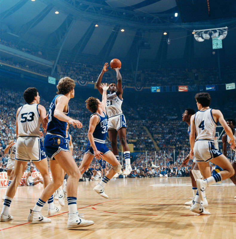 Undefeated North Carolina held off Wilt Chamberlain and Kansas in triple overtime.