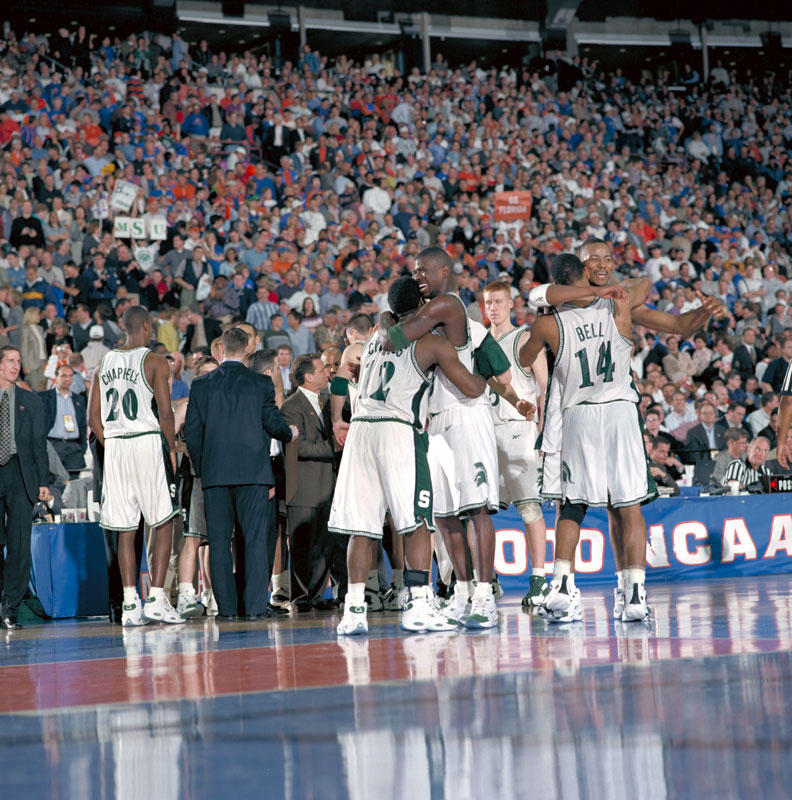 Michigan State celebrates with a win against Florida for the national championship.