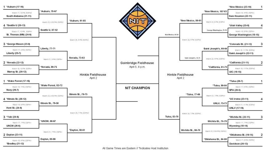 | 1959 | Evansville (21-6) | Arad McCutchan | 83-67 | Missouri State | Evansville, Ind. |
