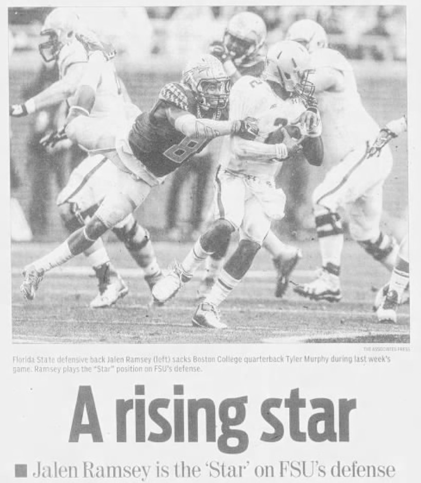 Ramsey, before the 2014 BCS national championship (from the South Florida Sun Sentinel): "I want to let the world know who I am. Some people know, but not everybody knows who Jalen Ramsey is yet, and I'm ready to show people that."