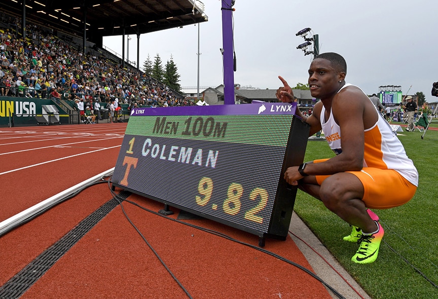 Coleman entered the outdoor championships with four sub-10 second 100-meter times and a world-leading 19.85-second time in the 200 meters, the second-fastest in collegiate history. With professional aspirations looming, a pair of NCAA titles was all that was needed for Coleman to close his collegiate career.