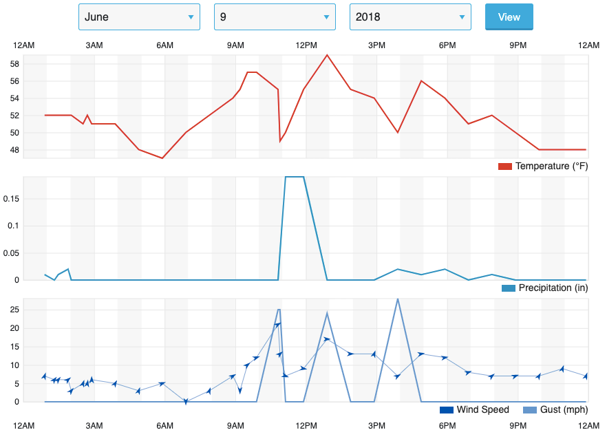 The weather added to the overall stage of Sydney McLaughlin's championship race. Take a look at the weather in Eugene on June 9, 2018 below: