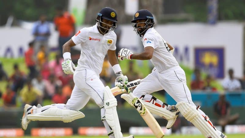 Sri Lanka lost Kusal Perera after Karunaratne's dismissal but Dhananjaya de Silva (14) joined Mathews and helped Sri Lanka knock off the remaining runs with two sessions to spare.