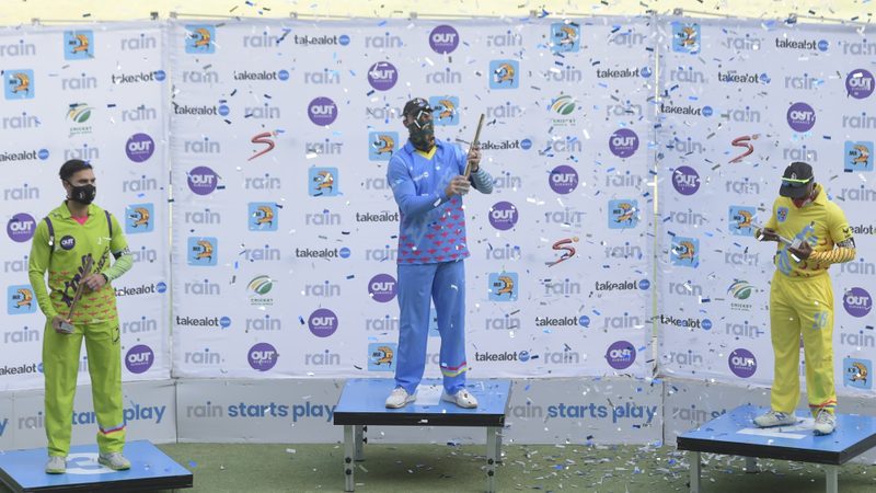 Saturday's match featured three teams of eight players each, with no regional identity. The Eagles, a team captained by AB de Villiers, were the winners with a total of 160 for four from 12 overs, with six overs each bowled by the other two teams. De Villiers hit 61 and Aiden Markram scored 70.