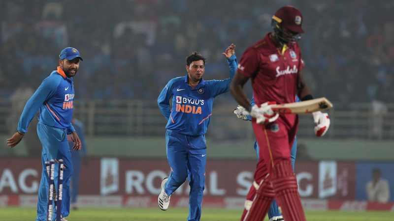 Kuldeep Yadav then shone with the ball, picking up a hat-trick, his second in ODIs, the first Indian to do so, when he dismissed Shai Hope, Jason Holder and Alzarri Joseph off consecutive balls to completely derail the already wayward Windies chase.