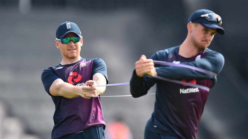 England captain Eoin Morgan, who has said it is not his job to tell the crowd how to behave, won the toss in overcast conditions and on a green pitch that promised to help his attack.