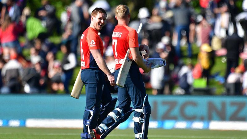 After England lost Johnny Bairstow first ball, and Vince in the second over, Morgan (32) and Dawid Malan (39) set about rebuilding the innings.