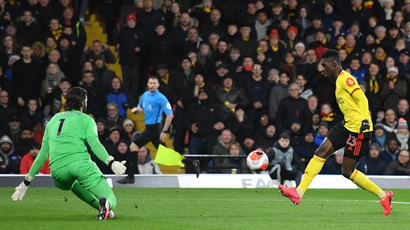 Watford continued to ramp up the pressure on the leaders and nine minutes into the second period, Ismaila Sarr poked home an Abdoulaye Doucoure cross, before doubling the Hornets’ advantage six minutes later, lobbing the ball over Alisson with utmost calm and composure after being put through by Will Hughes.