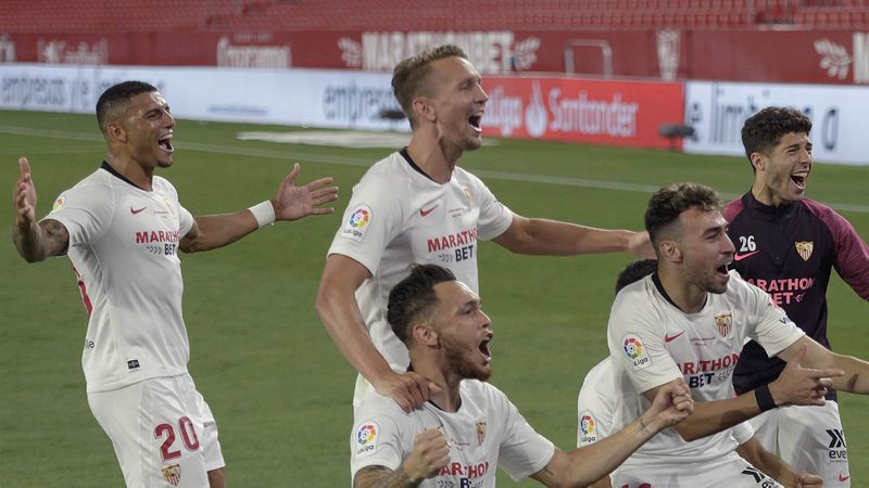In the stands, the substitutes, still wearing masks, sat spread out in the rows behind their coaches and Sevilla's were among the few celebrating when the goals flew in shortly after half-time.