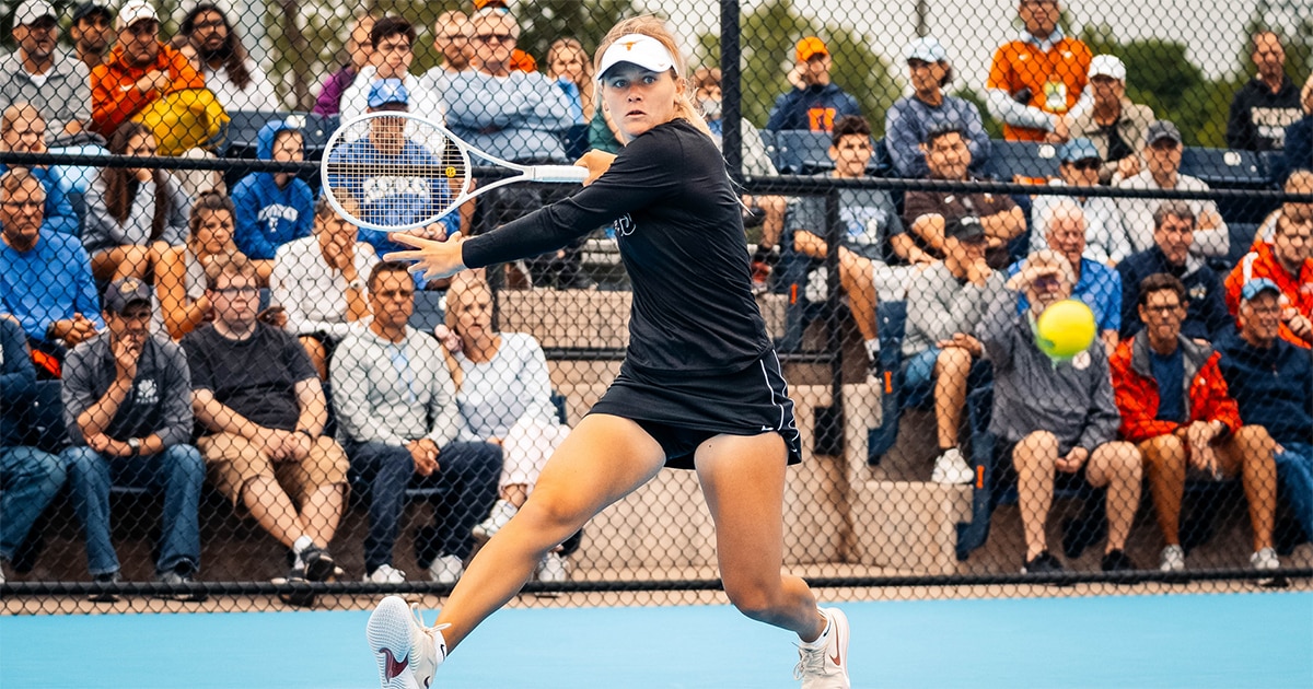 Texas began the evening winning the doubles to take the first point of the match. The Longhorns swept the doubles field.