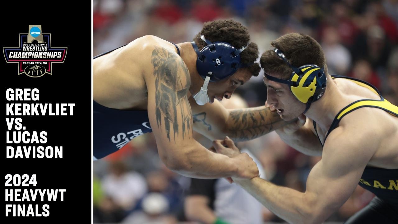 Heavyweight Greg Kerkvliet added a title at heavyweight, his first, with a 13-4 major decision of Lucas Davison in a match in which he did not give up a single offensive point. He set a tone of total domination.