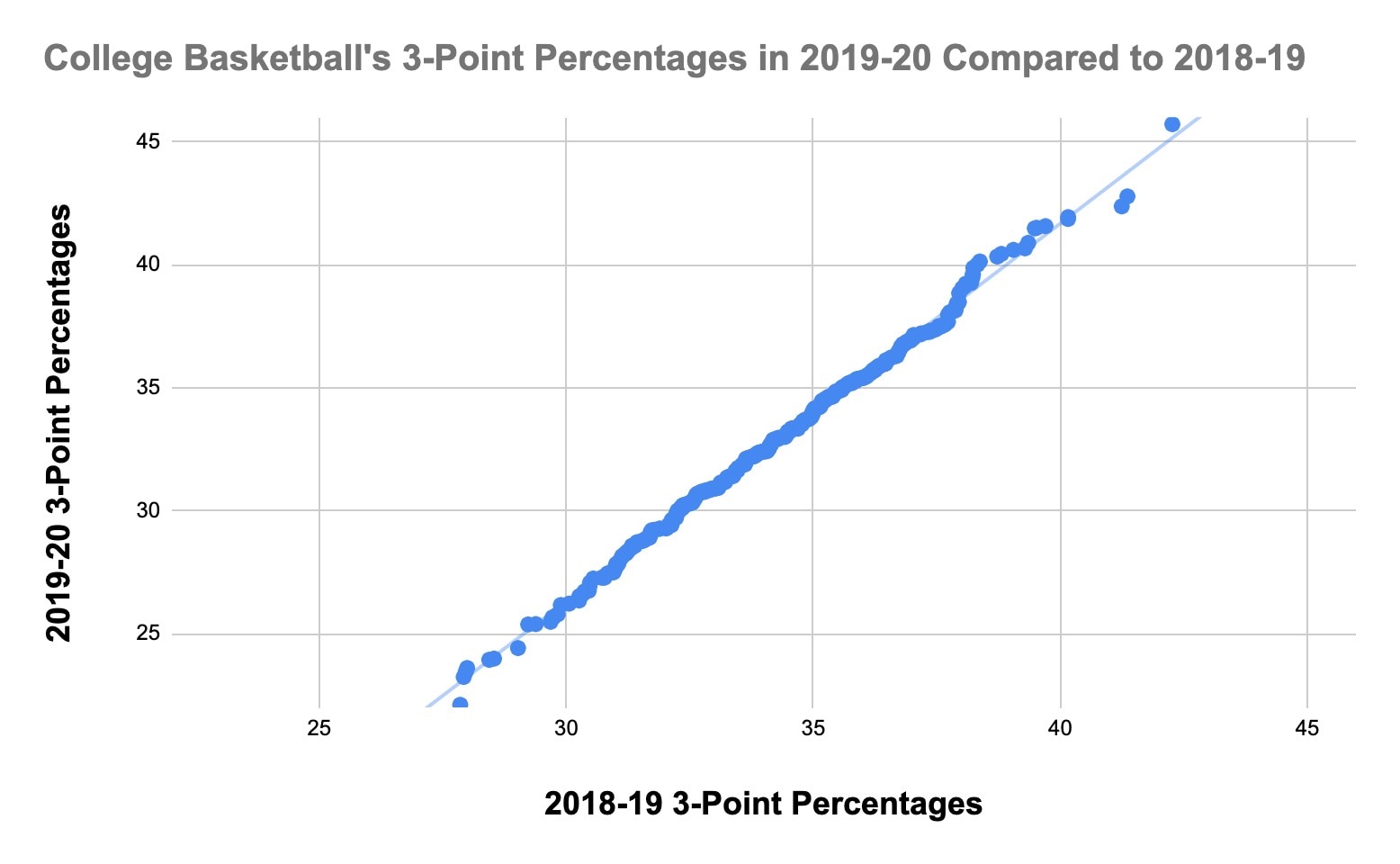 Last season, the national average for 3-point percentage was roughly 34.4 percent and there were 156 teams that shot between 33.0 percent and 36.0 percent.