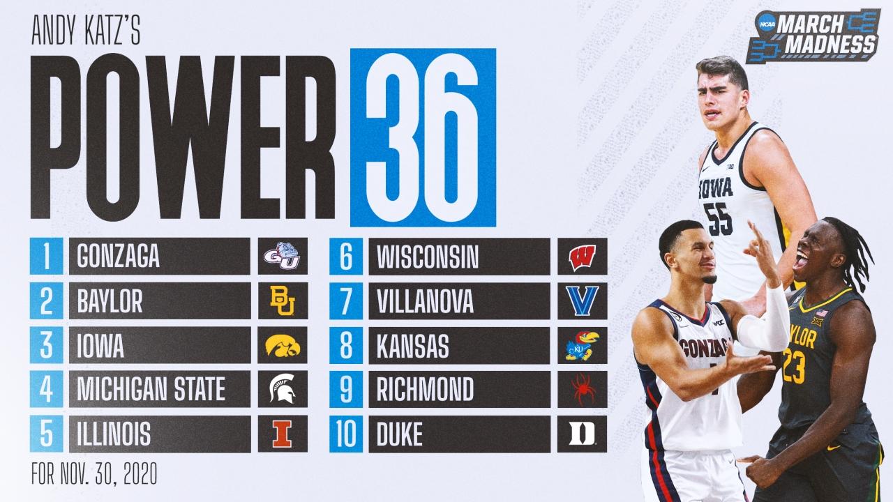 College basketball rankings: Iowa climbs into the top 3 in Andy Katz's Power 36
