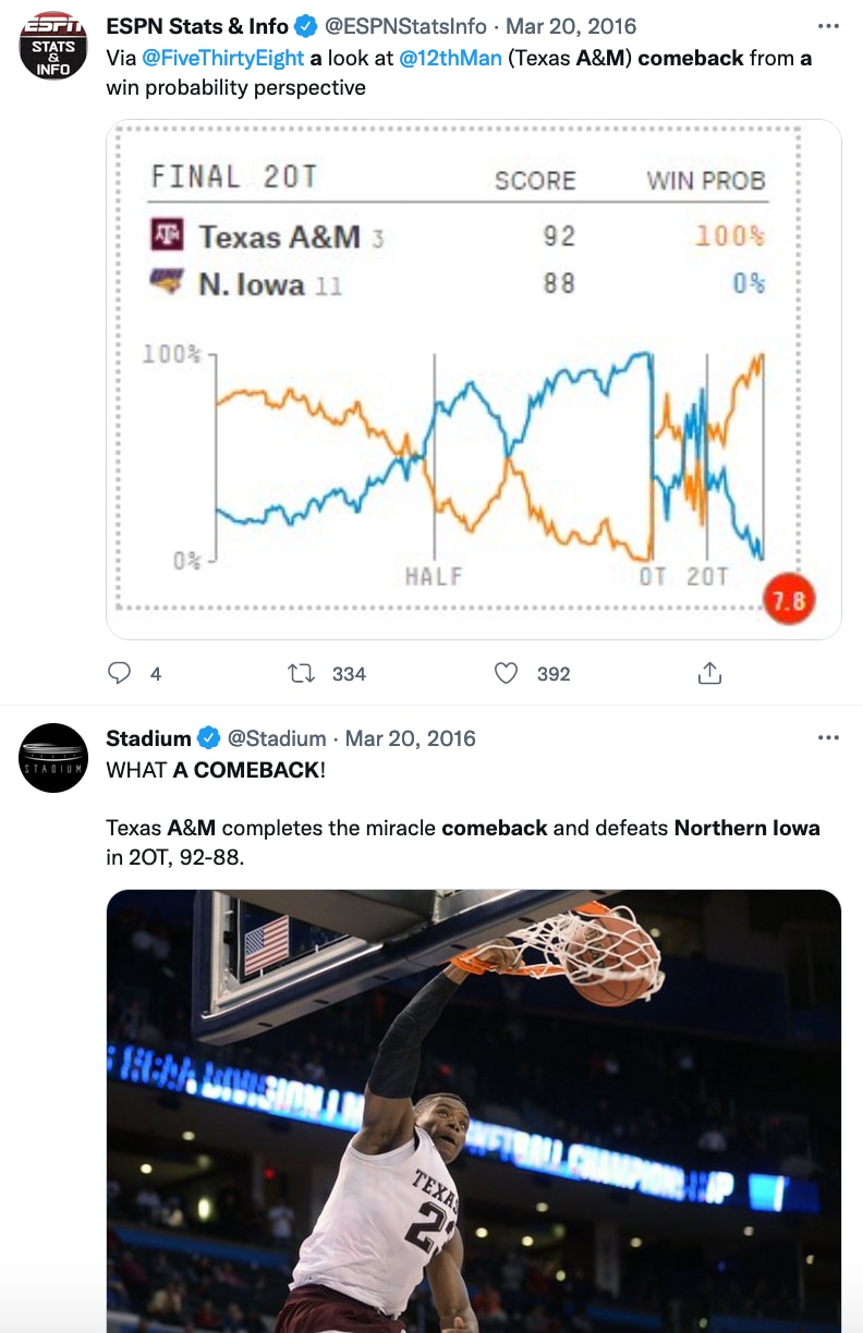 Speaking of efficiency, the basket that arguably turned Texas A&M's comeback hopes from a fever dream for Northern Iowa to a burgeoning reality was the Aggies' third made basket during their improbable run.