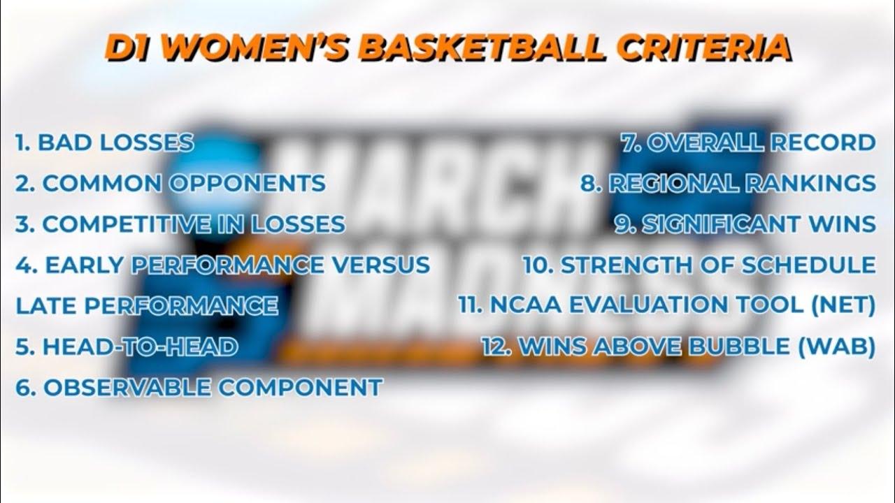 The DI Women’s Basketball Committee uses a list of 12 criteria: