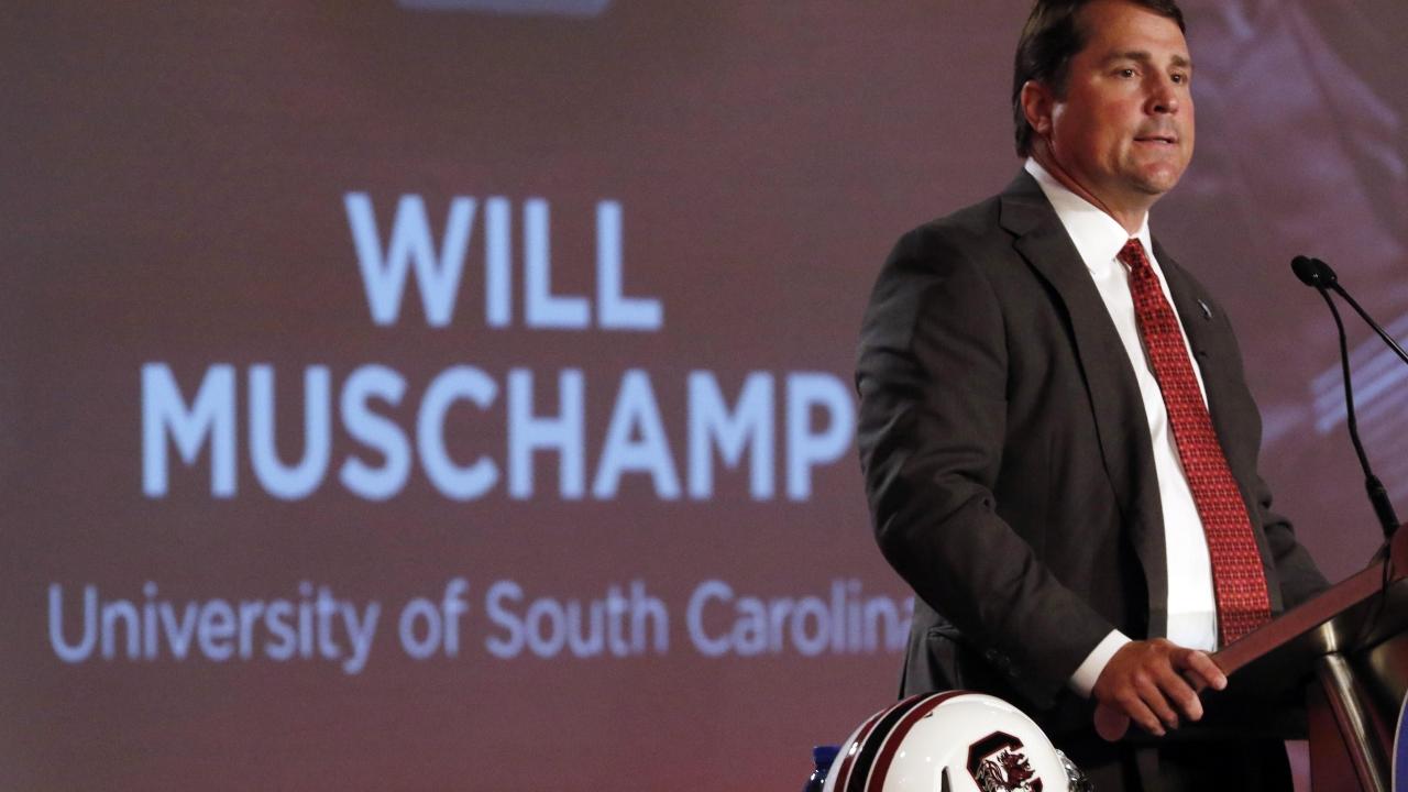 Will Muschamp succeeds Steve Spurrier as coach of the Gamecocks.