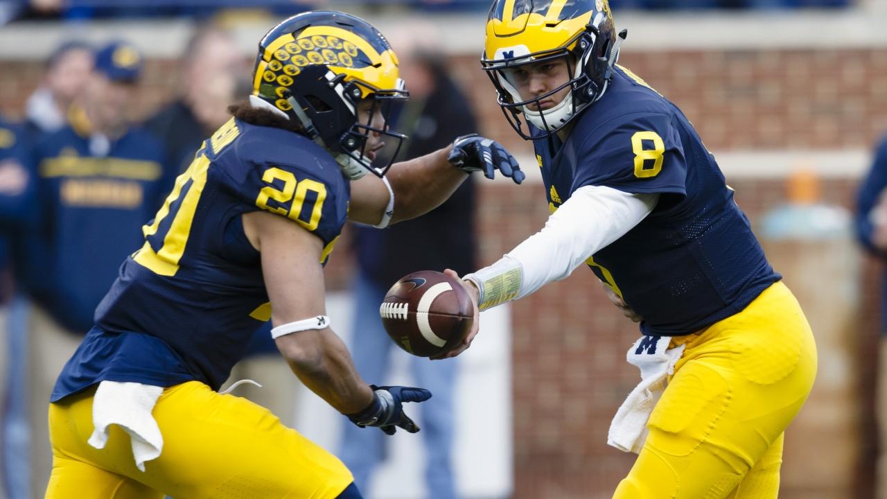 John O'Korn (8) transferred from Houston to Michigan and is competing for the No. 1 job.