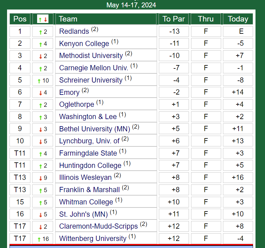 📊 DIII men's golf regional rankings