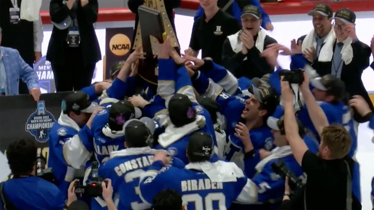 Hamilton wins the 2026 DIII men's ice hockey championship, defeating three-time defending champion Hobart 2-1 in overtime in the national championship game.