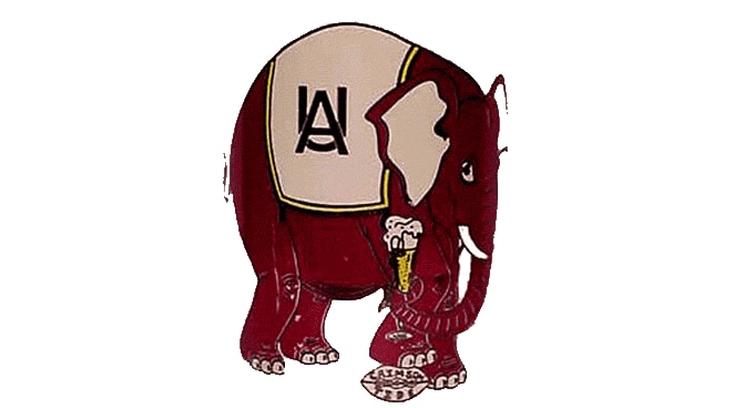 Not sure what the Alabama elephant is doing holding an ice cream cone/champagne glass/whatever it is, but my attention has been grabbed.
