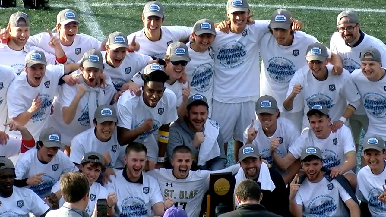 The 2023 DII men’s soccer title resides at St. Olaf College. The Oles won the national title on Sunday by defeating Amherst 2-1 in overtime.