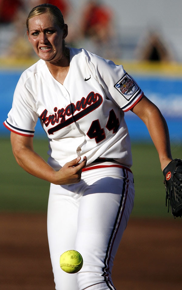 There are a lot of nearly-immaculate pitchers on this list, but not one did what Jennie Finch accomplished in 2001. Finch went 32-0 that year and won the national championship. "A perfect ending to a perfect season," Finch said following the title game. Finch is probably the most well-known softball player in the history of the game, and rightfully so. She too dominated her time, winning the 2001 and 2002 back-to-back Honda awards and setting the record for winning percentage and most consecutive wins in 2001.