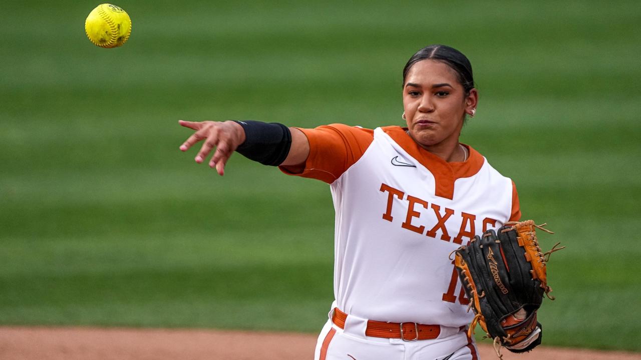 Scott, typically Texas’ starting third baseman, moved around the field inning by inning as the Longhorns built a commanding lead. After opening the game at third, she rotated through the infield, outfield and behind the plate before finishing her day in the pitcher’s circle. It took her just four pitches to retire a batter and complete the full nine-position tour.