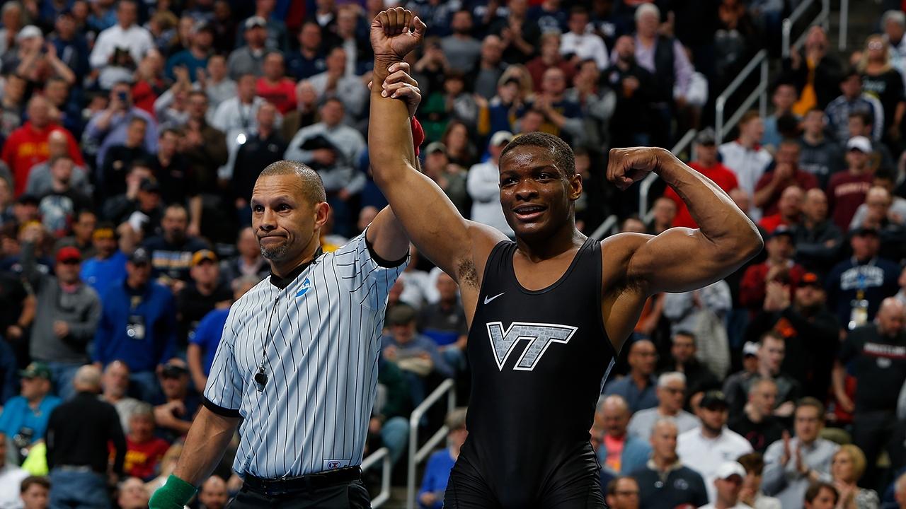At 125 pounds, Spencer Lee earned his second consecutive national title when he took down then undefeated Jack Mueller of Virginia. At 133 pounds, Nick Suriano made school history with a win over No. 1 Daton Fix of Oklahoma State to become the first Scarlet Knight national champ. He was later followed by 149-pound national champion Anthony Ashnault of Rutgers to bring two golden trophies back to Jersey. Yianni Diakomihalis won the 141-pound weight class over Ohio State's Joey McKenna, and Jason Nolf took home his third-consecutive individual title at 157 pounds. At 165 pounds, Mehki Lewis became the first Virginia Tech athlete to win a national title in wrestling when he beat returning national champion Vincenzo Joseph in the finals.