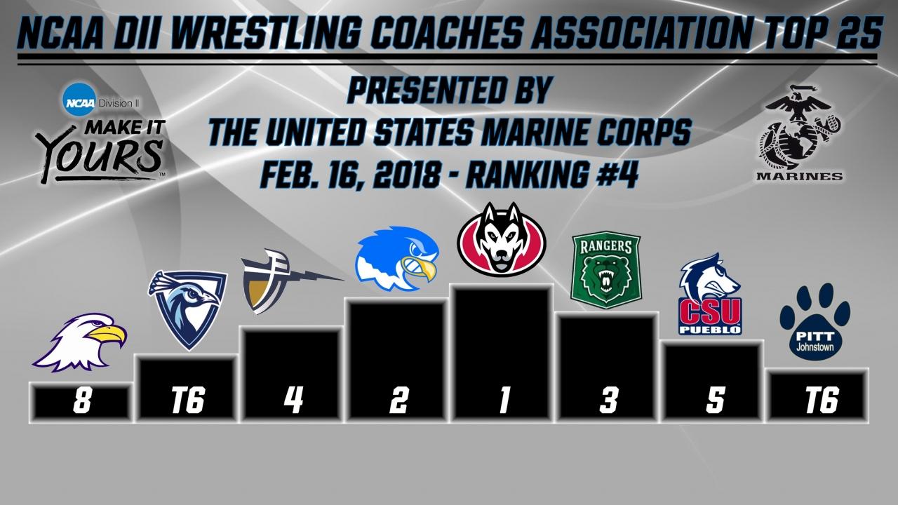 NCAA DII Coaches Wrestling Association release latest Top 25 and individual rankings of 2018
